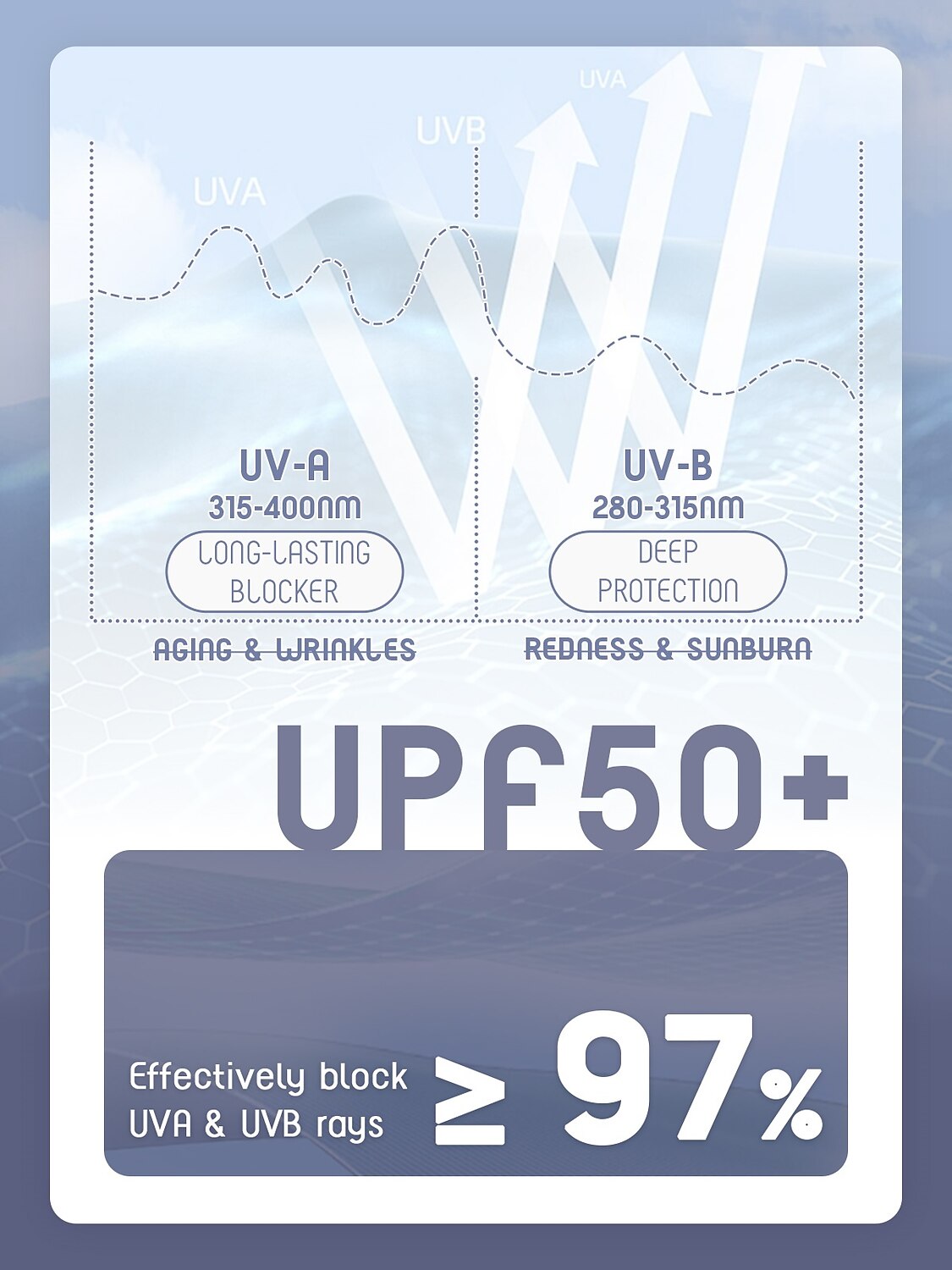 - UPF 50+: Superior sun protection